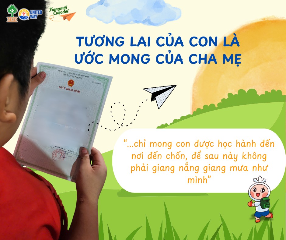 Với sự phối hợp chặt chẽ giữa nhà trường, các đơn vị chuyên môn và sự hỗ trợ từ MSD United Way Vietnam, từng nút thắt pháp lý dần được tháo gỡ. Hồ sơ được rà soát, thủ tục được hoàn thiện từng bước, để cuối cùng, cái tên của em được ghi nhận chính thức trên tấm giấy khai sinh.