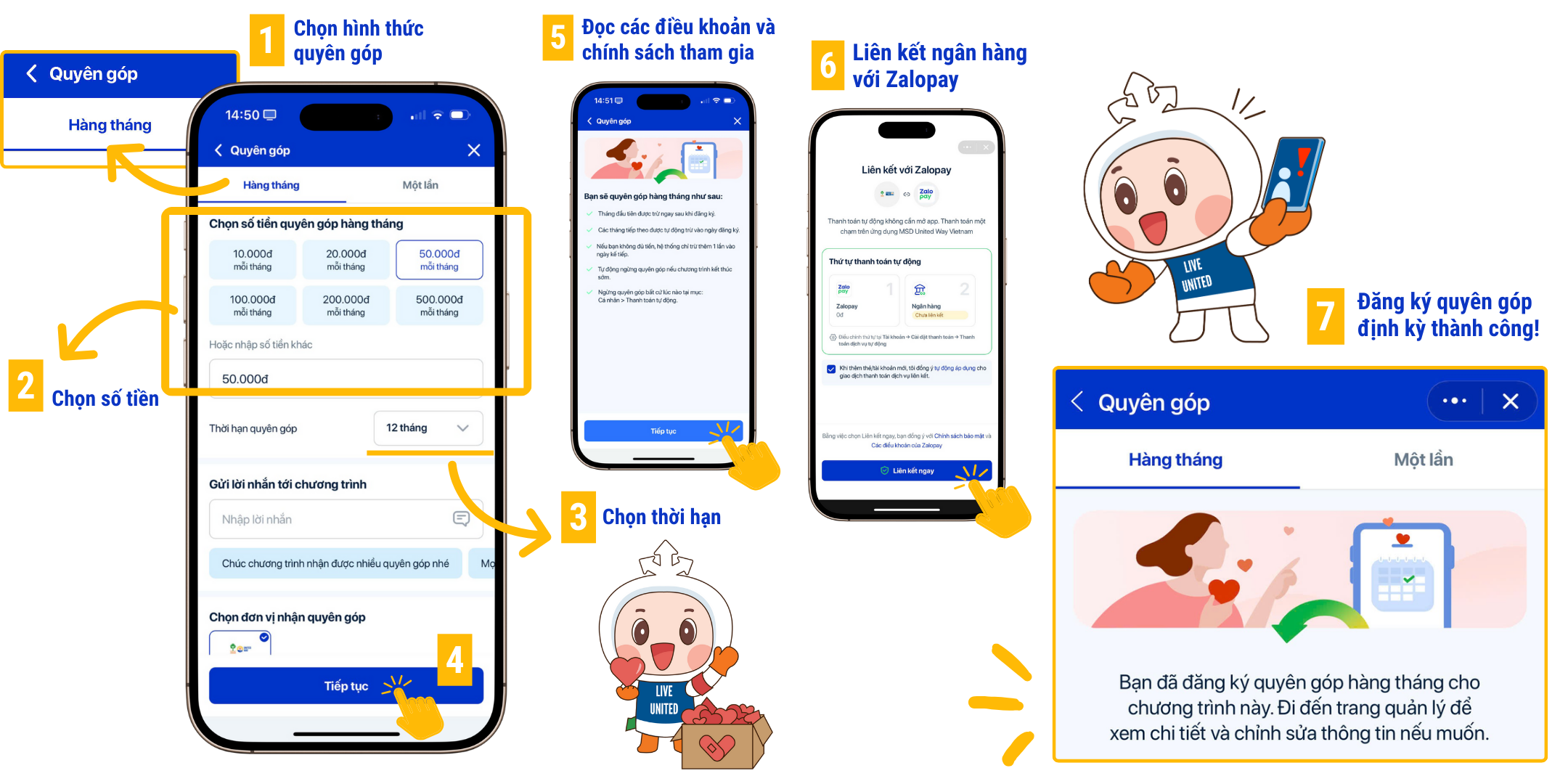 Bạn có thể thực hiện quyên góp định kỳ qua Zalopay chỉ với vài bước đơn giản: